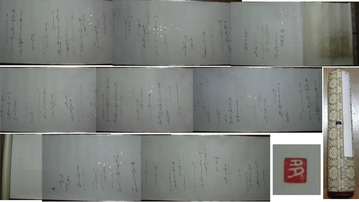 - 巻物 書 印有り(多) 360cm 和紙 金縁 書画 手紙 詩 歌 文字 美術品 工芸品 レトロ