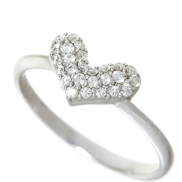 - K18WG メレダイヤ入りファッションリング ハートモチーフ指輪 D 0.15ct 2.0g 7号