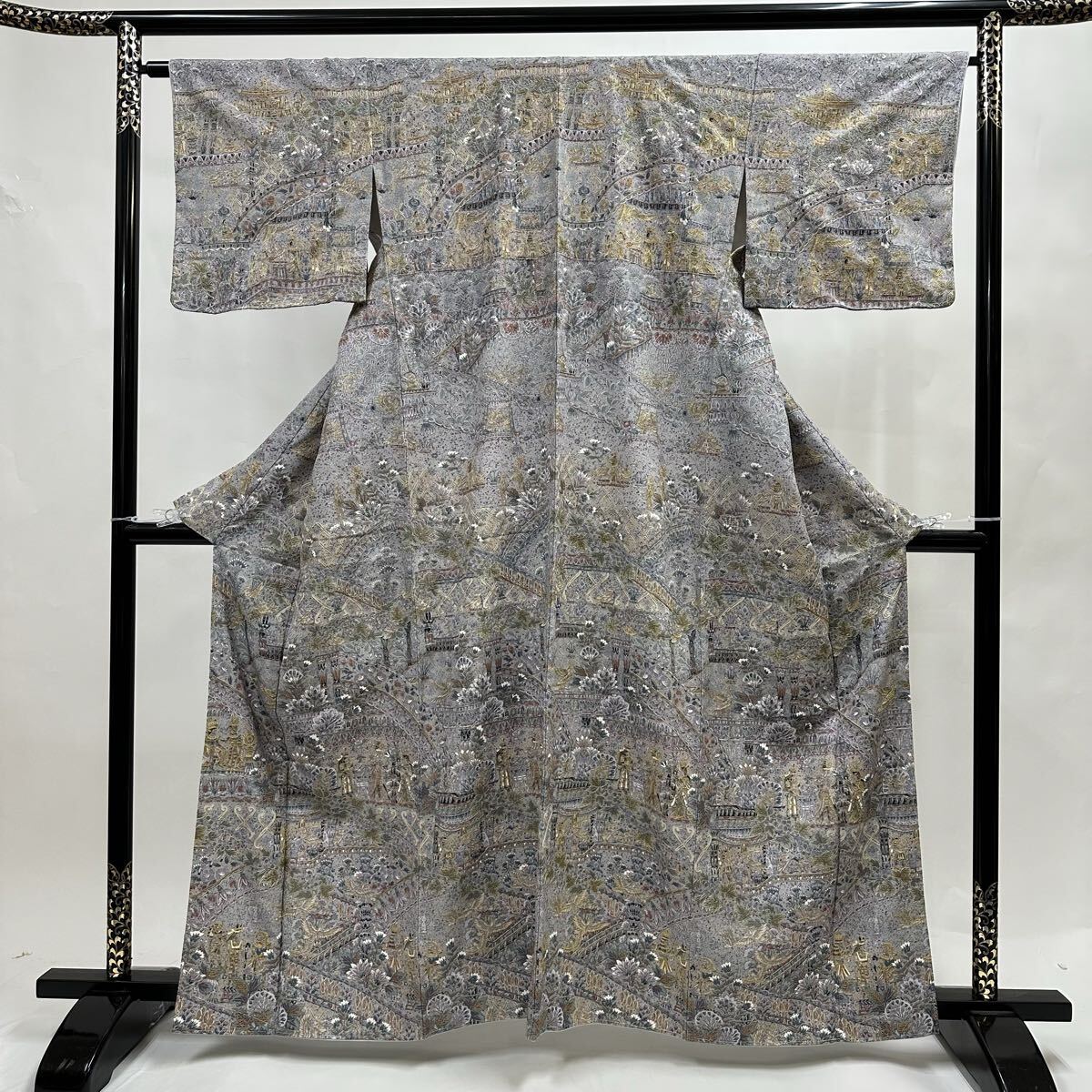 > 【七福】c732 訪問着 刺繍 正絹 袷仕立て 中国三大刺繍 汕頭刺繍 金糸 エジプト文様 着物 逸品 身丈 約160cm 裄 約64cm