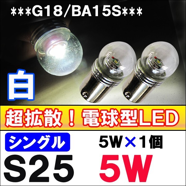 > 【互換品】12V/24V S25(G18/BA15S)/5W (5W×1LED) /シングル球 電球型リフレクター/白/2個