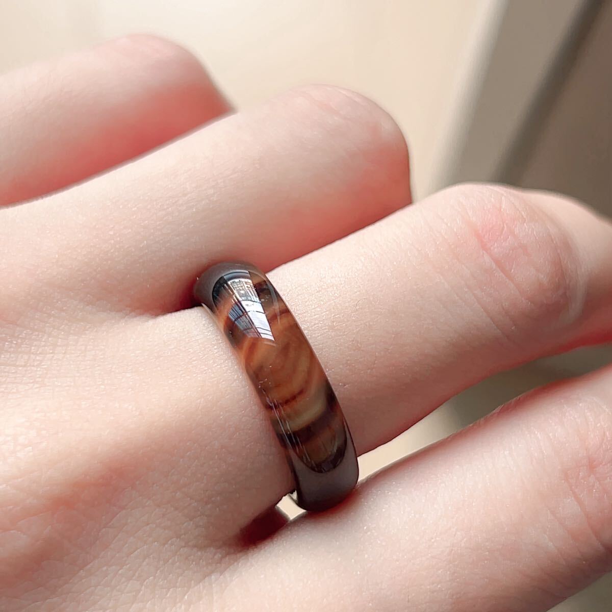 > ◇瑪瑙◇指輪◇ 天眼入り◇ 14号リング◇グリーンメノウ◇天然石◇パワーストーン◇巾着袋つき◇プレゼントにも030R8311