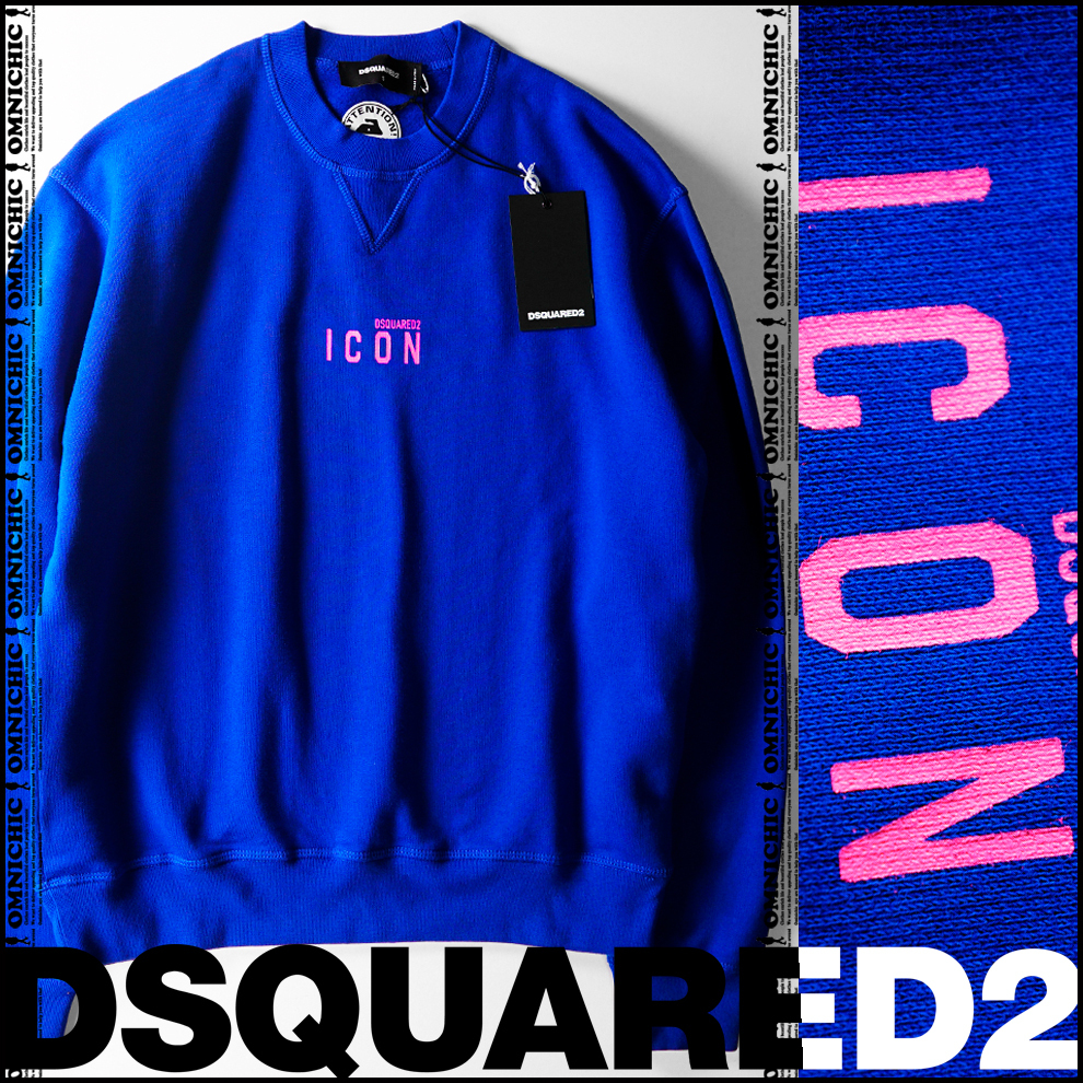 - 伊製ICONモデル■新品【DSQUARED2】ディースクエアード合わせやすさ抜群ピンクロゴが映えるアイコンロゴグレークルーネックスウェットS