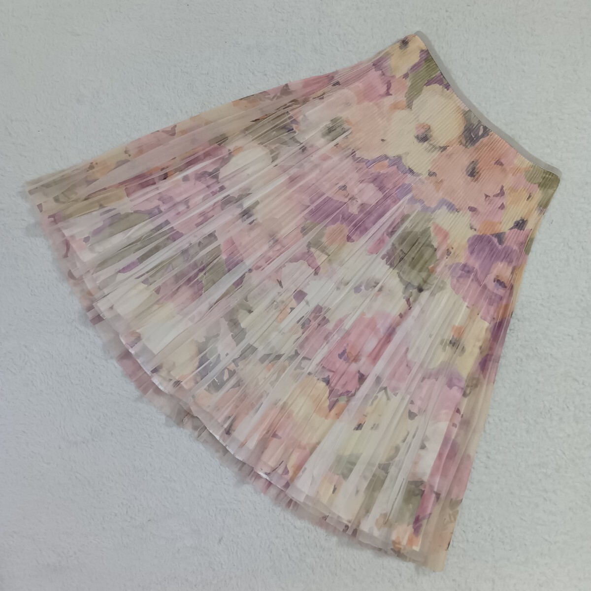 - 23区 シフォン プリーツ 花柄 膝丈スカート ピンク系 34 ★1000