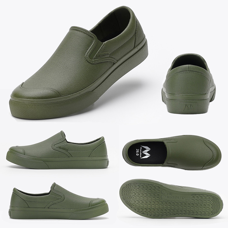 - 防水シューズ レインシューズ レインスニーカー 無地 洗車 通勤 通学 ( カーキ / 25cm ) スリッポン 防水 耐油 3~4日以内発送