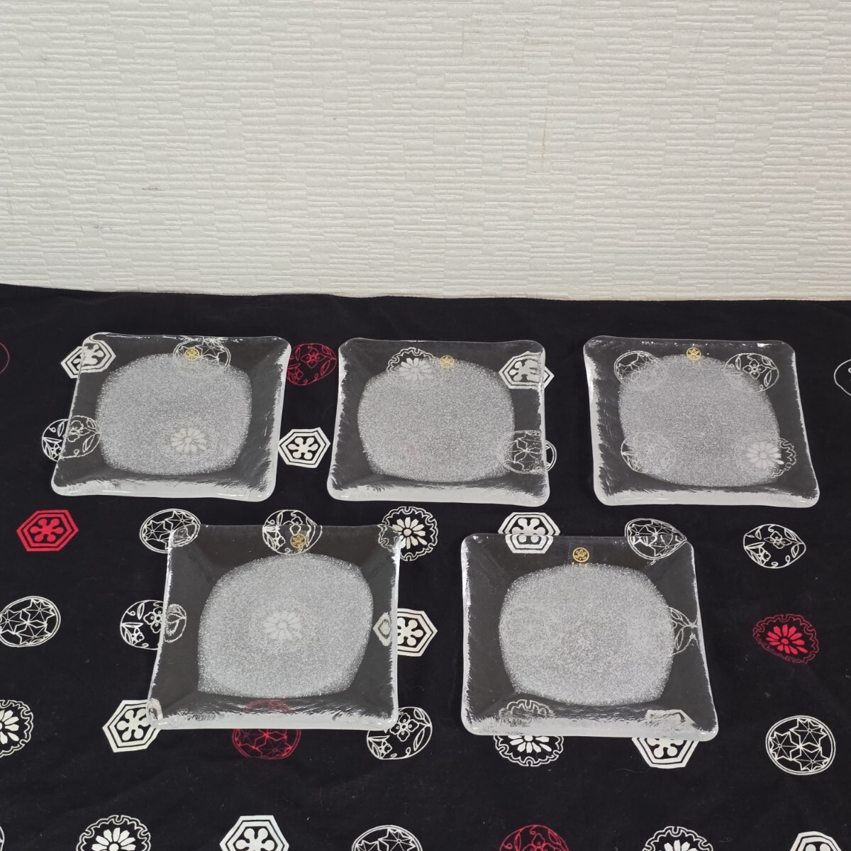 - 【未使用品】たち吉 橘吉 ガラス あわ雪 淡雪 盛皿 角皿 5枚セット
