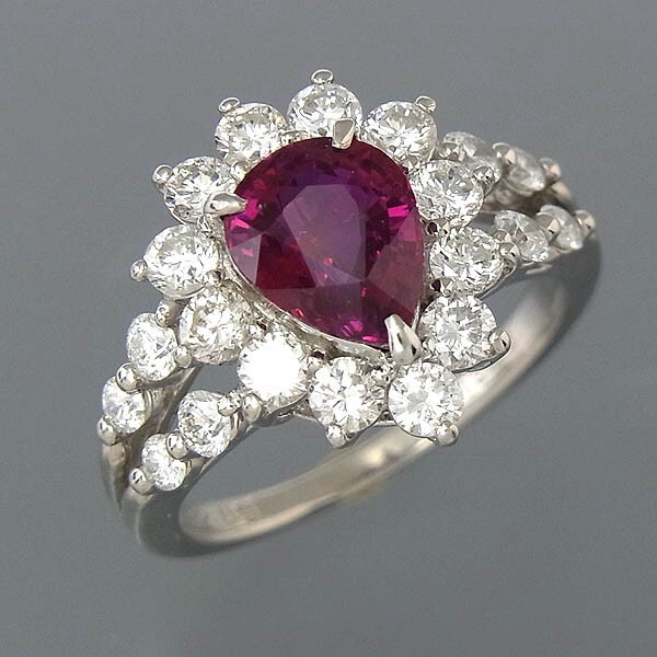 - 非加熱 Pt900 ルビーリング R 2.097ct D 1.31ct 6.8g 12号