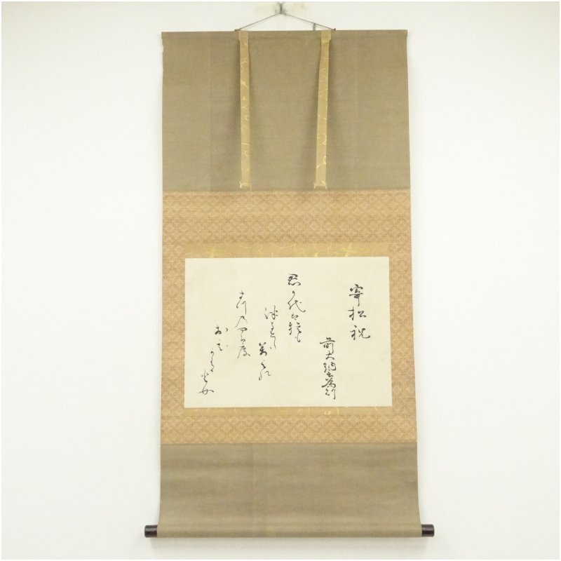 - 江戸後期 冷泉為則筆 寄松祝 和歌 肉筆紙本掛軸(共箱)