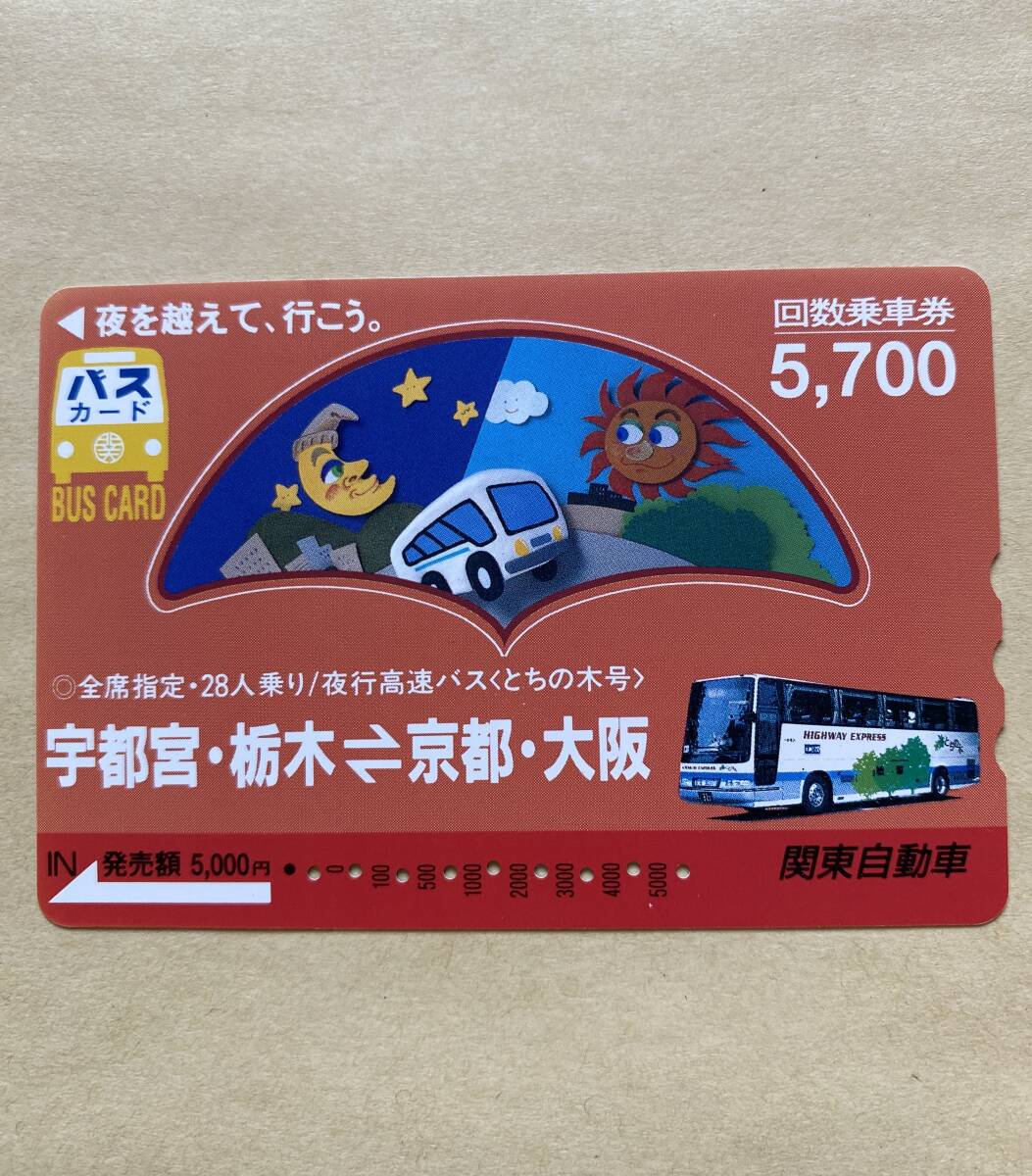 - 【使用済】 バスカード 関東自動車 宇都宮・栃木⇔京都・大阪 全席指定・28人乗り/夜行高速バス〈とちの木号〉