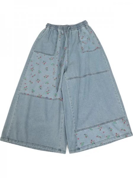 - lh 0708 ズボン 縫い合わせ 花柄 フリーサイズ ナチュラル 綿100% 大人可愛 サラサラ ゆったり 薄め色