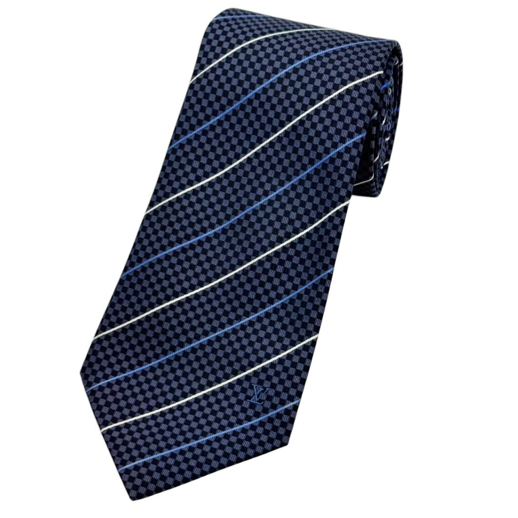 - 極美品 ルイヴィトン ブランド ネクタイ LOUIS VUITTON ヴィトン LV シルク 100% M75925 マイクロダミエ ストライプ ネイビー 紺