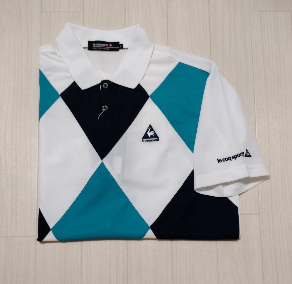 - 【新品タグ付】le coq golf collection アーガイル ポロシャツ Lサイズ ルコック デサント ホワイト