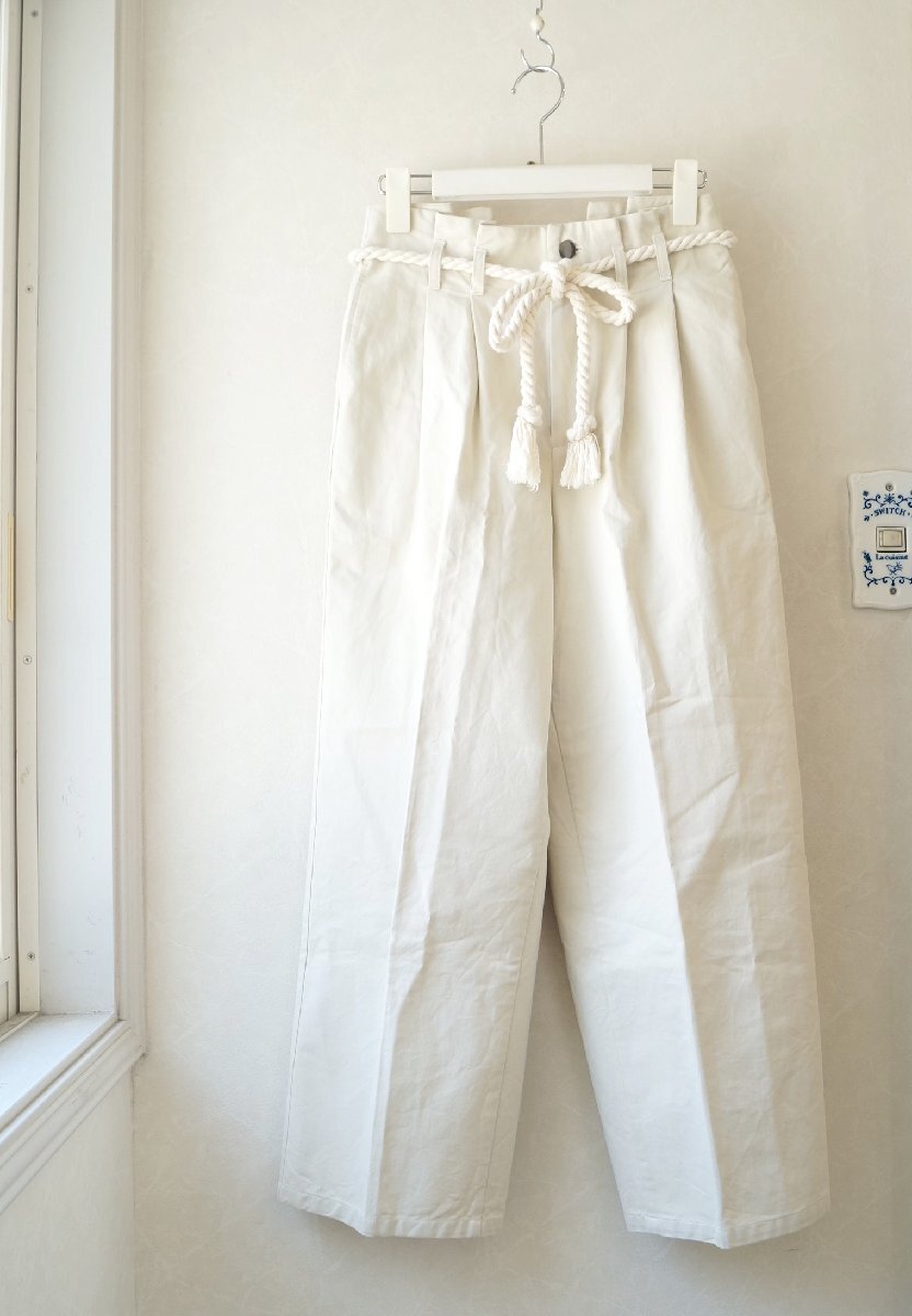 > ★送料無料!! LADY LUCK LUCA /ルカ *ロープベルト付コットンパンツ タックワイドパンツ アイボリー38* 古着のgplus広島 2508t1