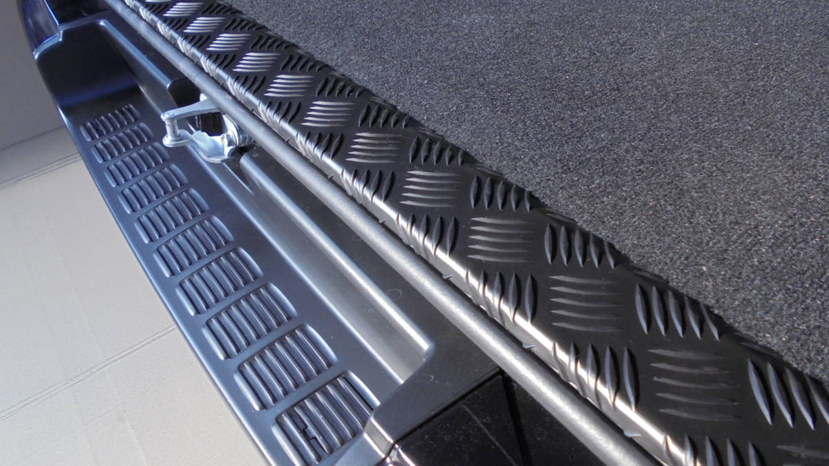- ハイエースバン 200系 S-GL用 リアスカッフプレート ナロー用 アルミ製縞板 アルマイトブラックカラー