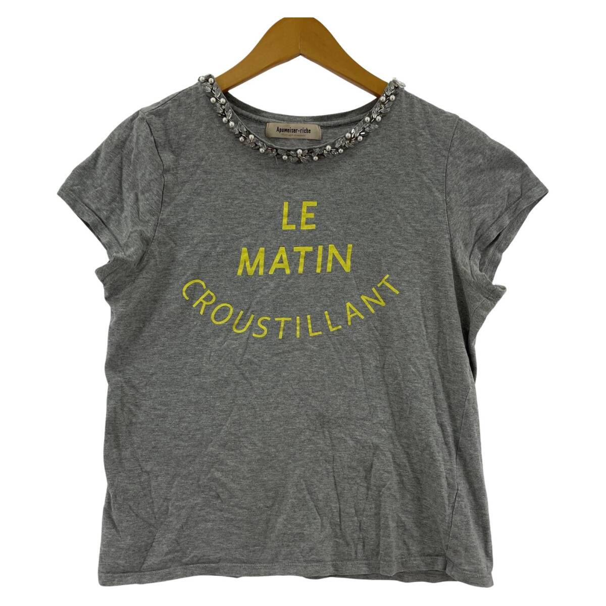 - Apuweiser-riche アプワイザーリッシェ フレンチスリーブ ビジューデザイン カットソー size2/グレー ゆうパケットOK