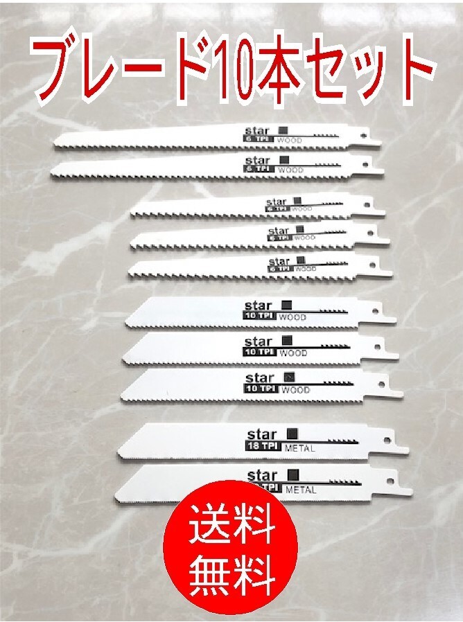 - 【替刃10本セット】レシプロソー 電動ノコギリ ブレード 高速切断 替刃 金属用 木工用 鋸刃 開口 セーバーソー