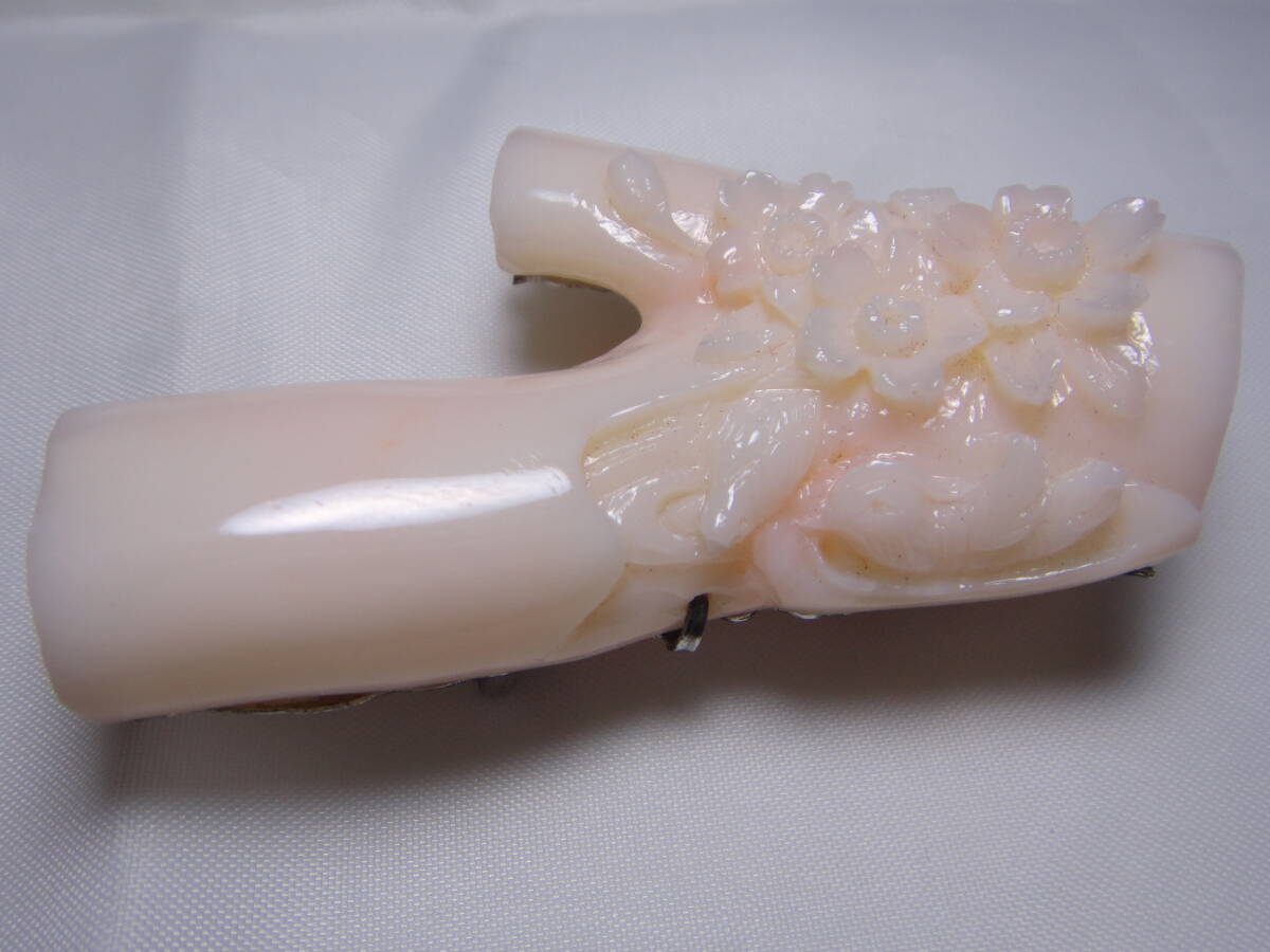 > 本珊瑚 サンゴ さんご 帯留め 18K刻印 肉厚! Big枝 大型 彫刻 桜 鴛鴦 約34.57g レトロ ヴィンテージ アンティーク Y749