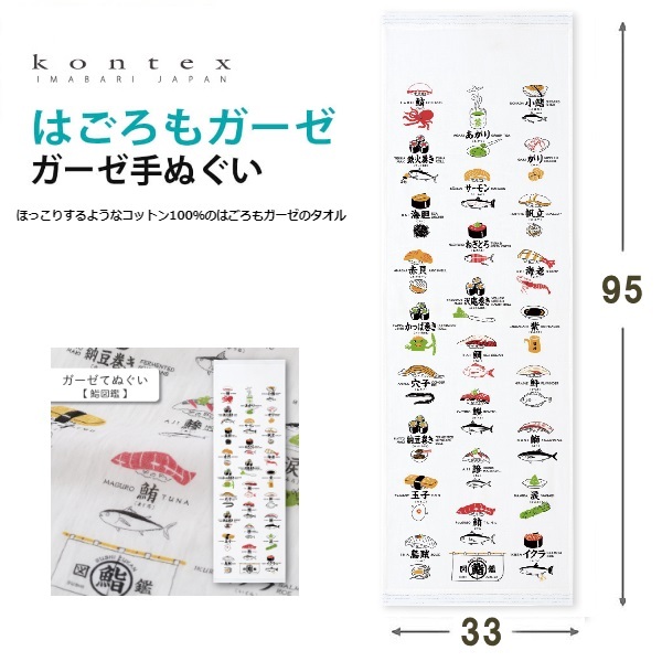 - はごろもガーゼ 手ぬぐい 寿司図鑑 4824 kontex コンテックス 手拭い タオル