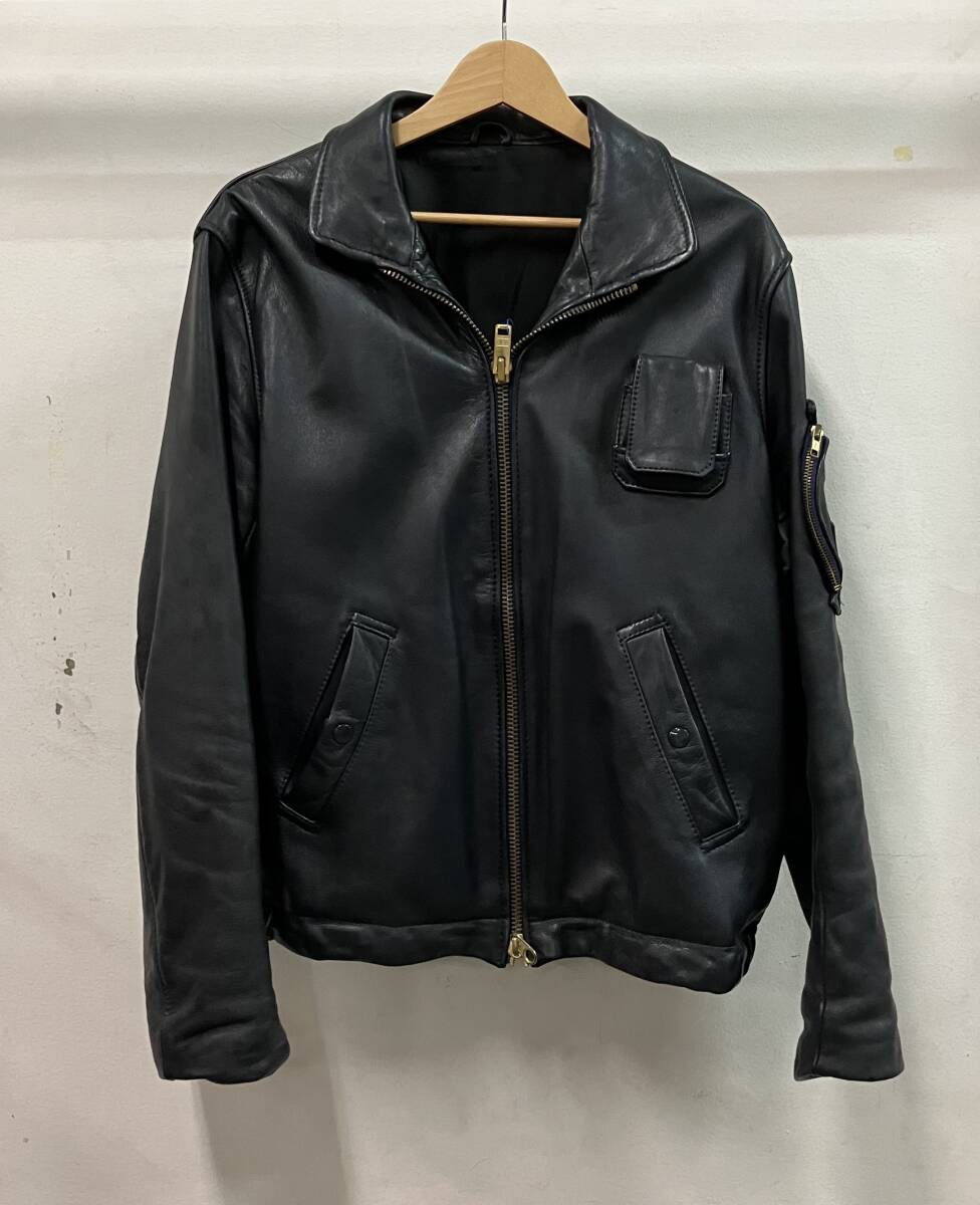 - Cuir キュイール フランス軍 パイロットジャケット シングルライダース ダブルジップ 品質表示タグ無し サイズ不明 ブラック レザー