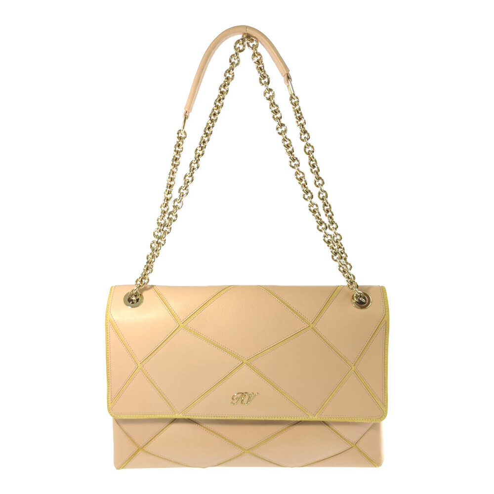- Roger Vivier ロジェヴィヴィエ カーフ ヤギ レザー Wチェーン ハンドバッグ ショルダーバッグ/ピンクベージュ■587235