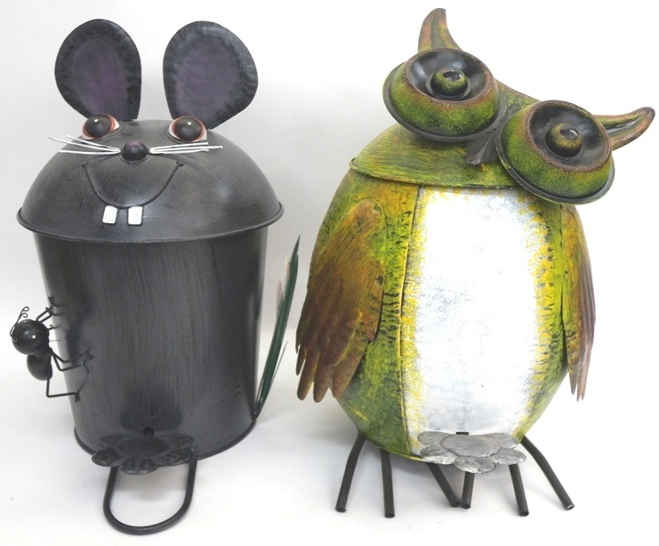 - M606Mちょる☆美品☆アンティーク調 アニマルのダストボックス ブリキ 2点セット ゴミ箱 ダストビン フクロウ マウス 置物 ダストボックス