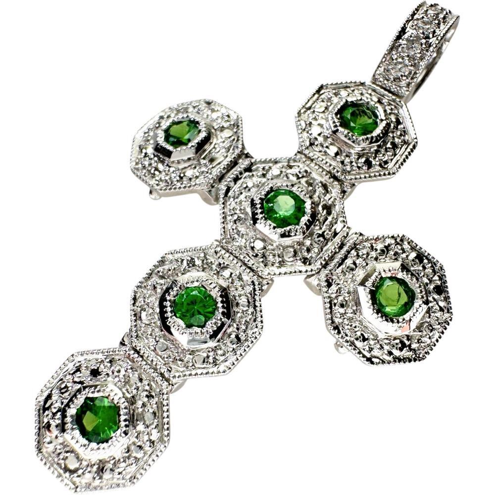 > クロス/キューブ変形 2WAY グリーングロッシュラーガーネット 0.43ct ダイヤモンド 0.06ct ペンダントトップ K18WGホワイトゴールド