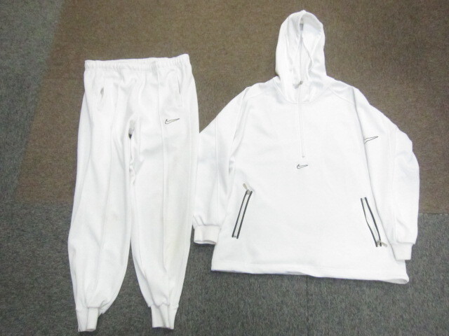 > ナイキ 90sヴィンテージ ジャージ上下セットアップ メンズL 白 スウォッシュロゴ刺繍トラックジャケット&ジャージパンツ スポーツ08029