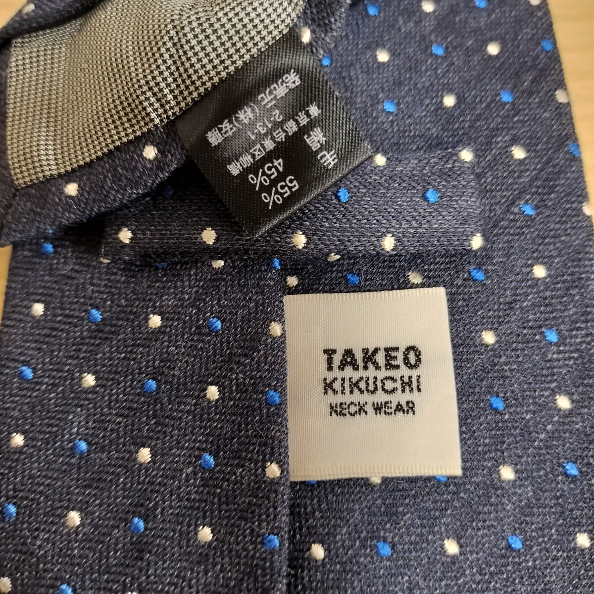- TAKEOKIKUCHI(タケオキクチ)グレー紺青白点々模様ネクタイ