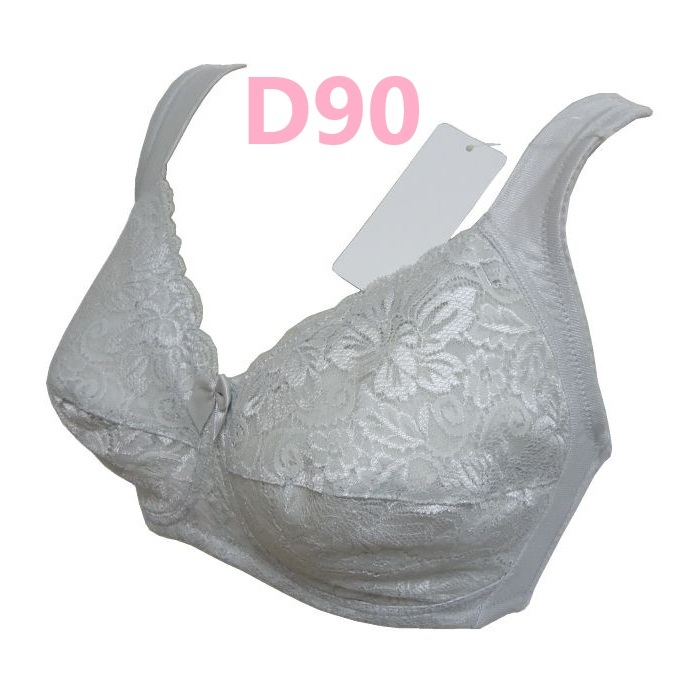 - D90・シルバーグレー 綿混 フルカップノンワイヤーブラジャー カップ裏 綿100% 幅広ストラップ 脇高設計 新品