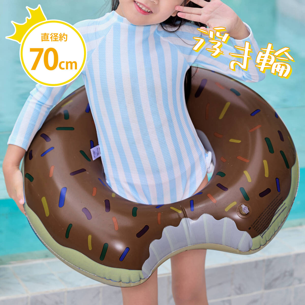 - 浮き輪 チョコレートドーナツ形状 インフレータブル 水上おもちゃ フロート アームリング 水泳用具(コーヒー色) ;J4385;
