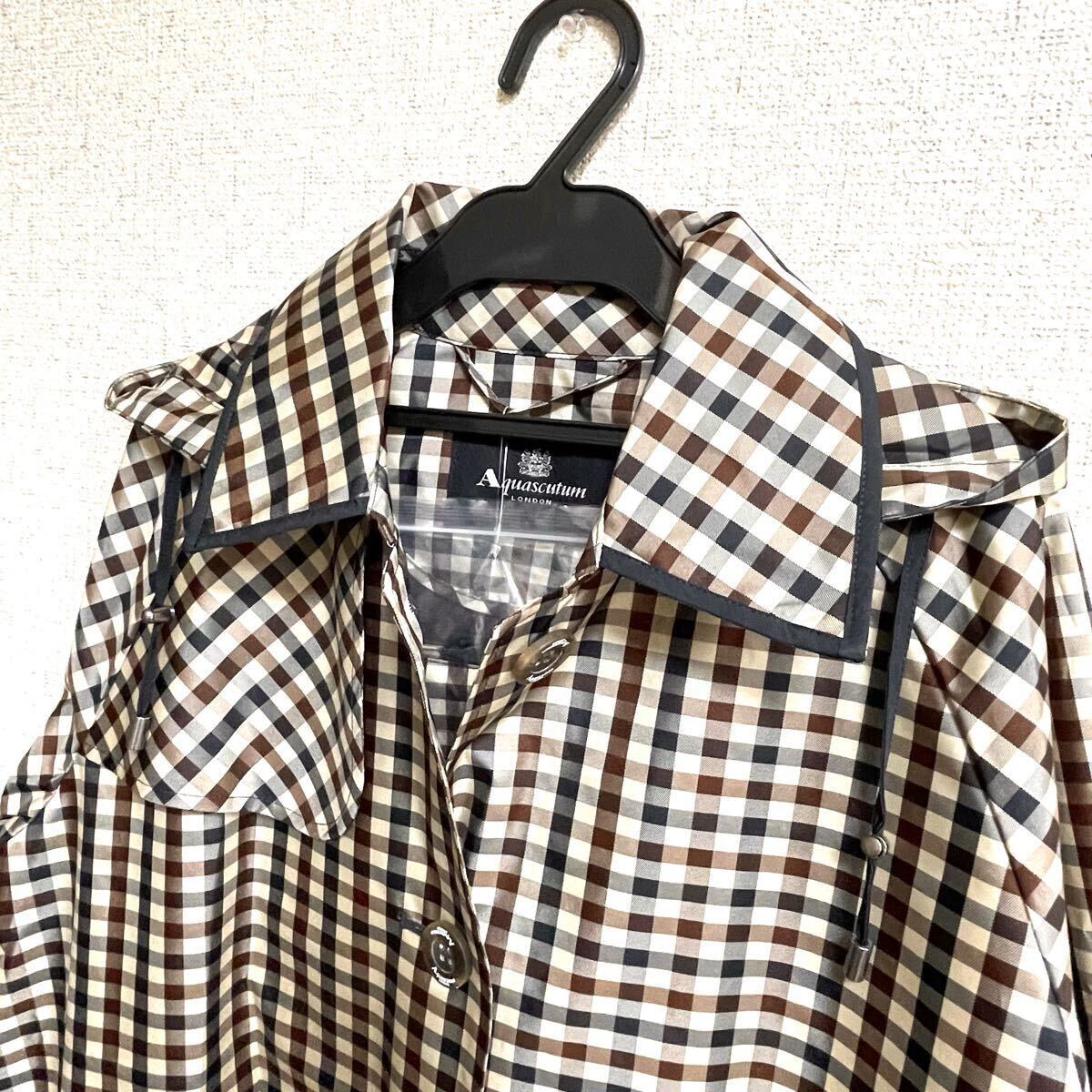 - 新品 アクアスキュータム レインコート レインウェア 収納袋付 撥水 防水 Lサイズ トレンチコート チェック