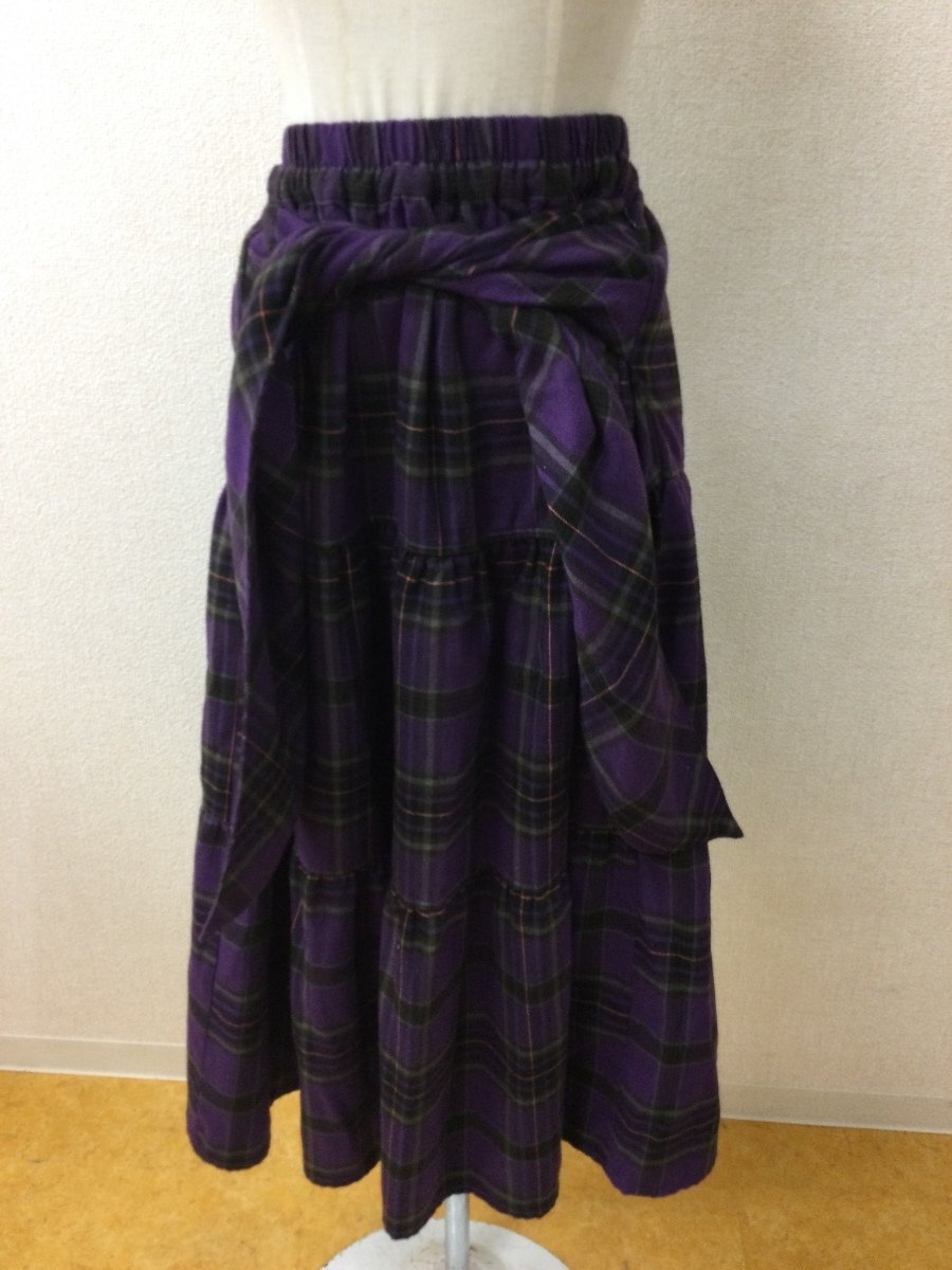 - RNA パープルチェック ギャザースカート ウエストゴム サイズM