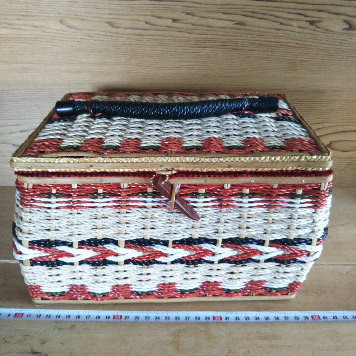 > 25080805 昭和レトロ ソーイングボックス 裁縫箱 小物入れ バスケット カゴ アンティーク 籐編み メイクボックス