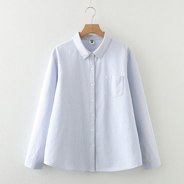 - c 2508 フリーサイズ ワイシャツ チュニック トップス ナチュラル 綿100% 通気性肌触り抜群 サラサラ ストライプ ブルー