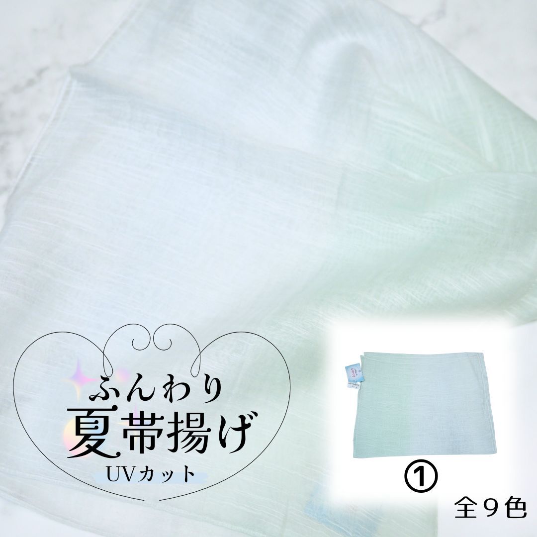 - ふんわり夏帯揚げ 1 水色×薄緑 UVカット シルク混ショール 帯揚げ 夏用 全9色