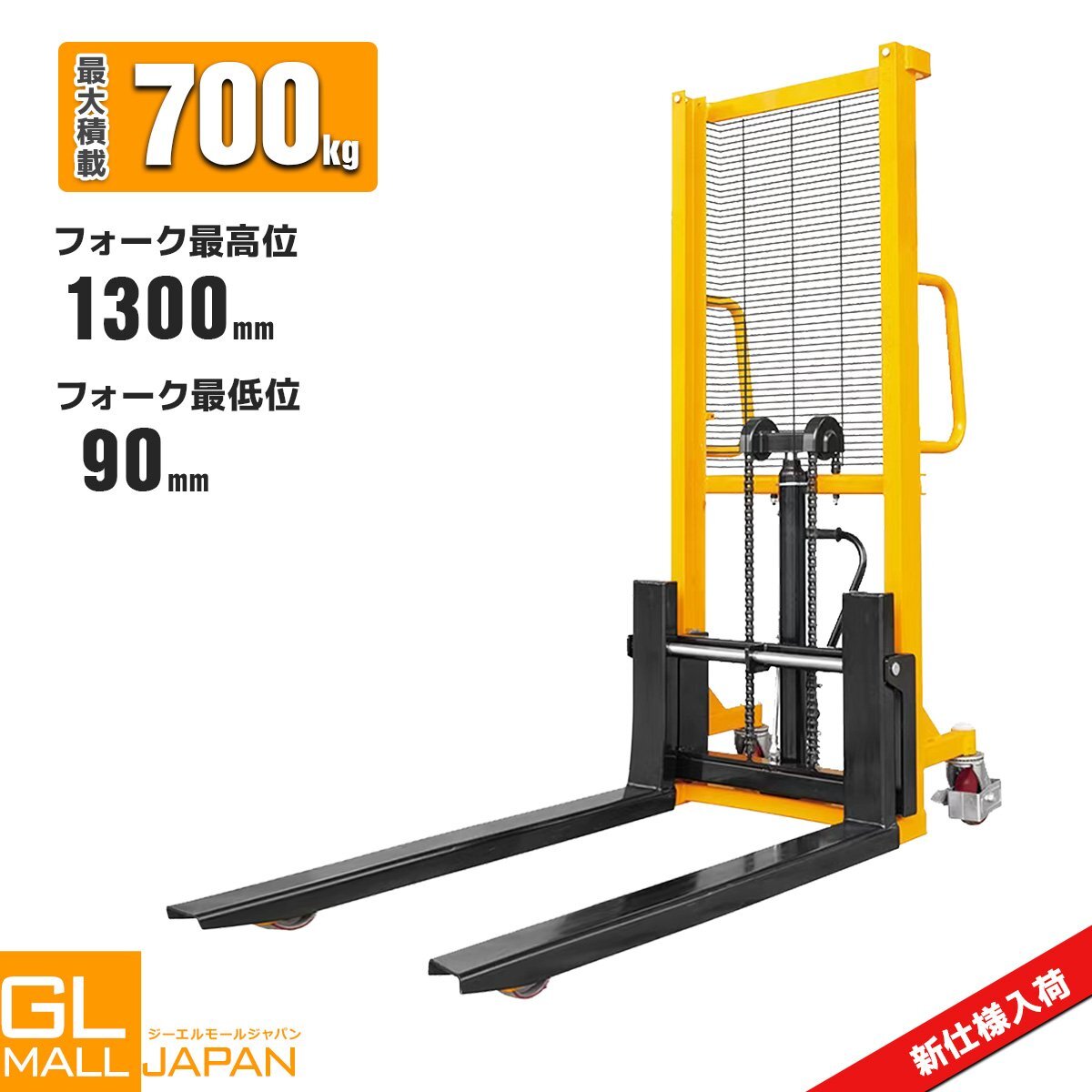 > 2台限定!1年保証付き★爪幅調整可能 フォークリフト 最大積載700kg 油圧手動ハンドフォークリフト最高位1300mm【チャーター便】