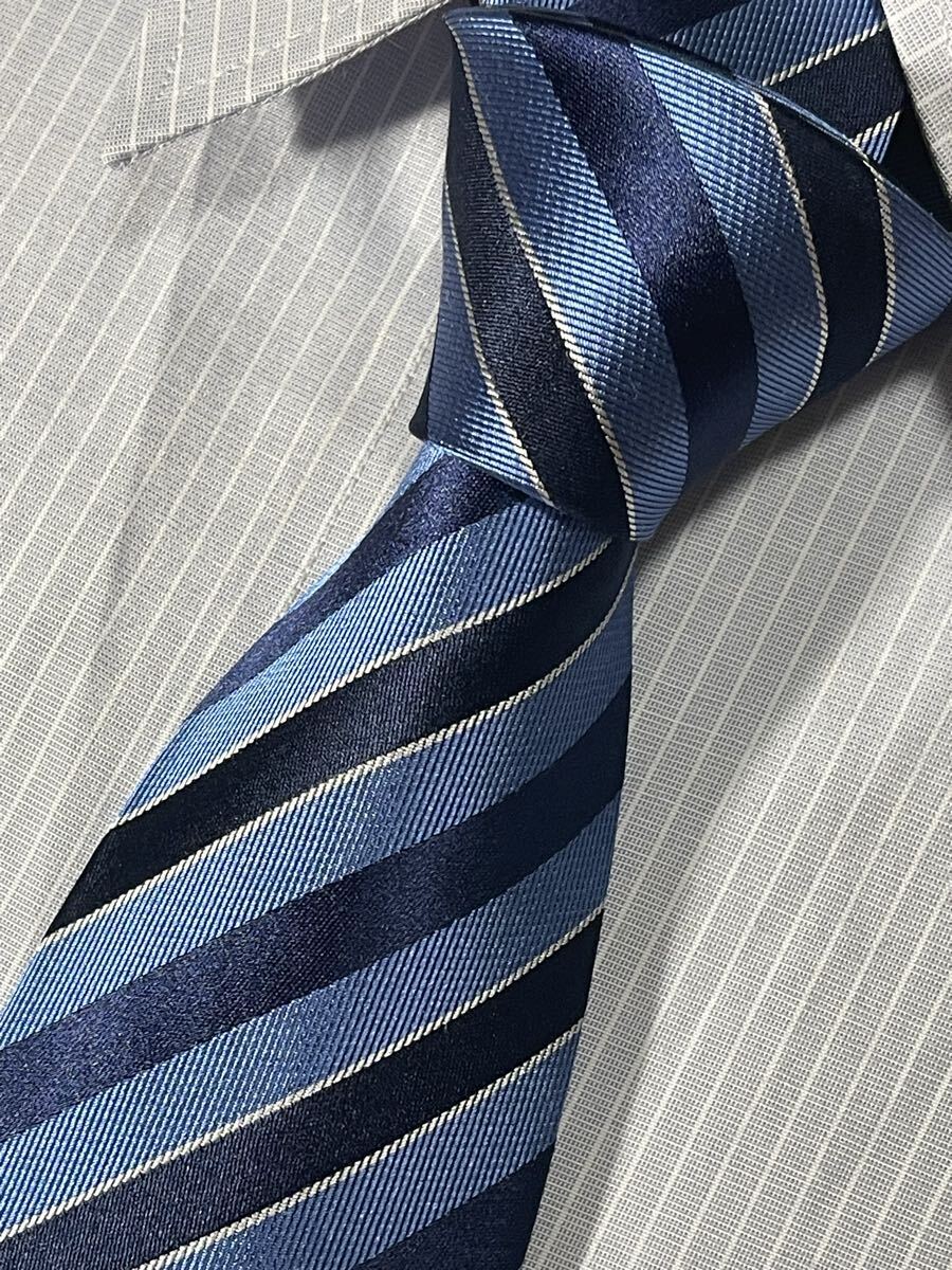 - ほぼ未使用 ″renoma″ レノマ ストライプ ネイビー ブランドネクタイ 508001
