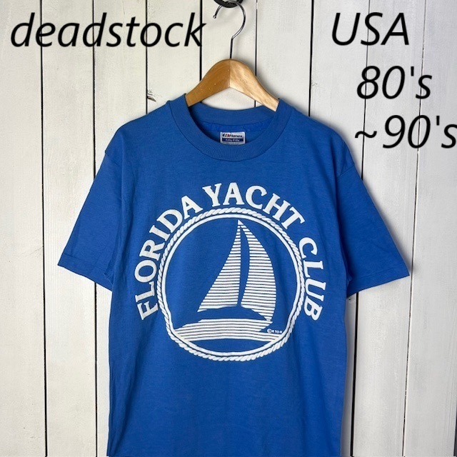 - T●265 ほぼデッド USA古着 80s~90s ヨット 発泡プリント Tシャツ 38-40 M Hanes オールド ヴィンテージ 未使用 シングルステッチ
