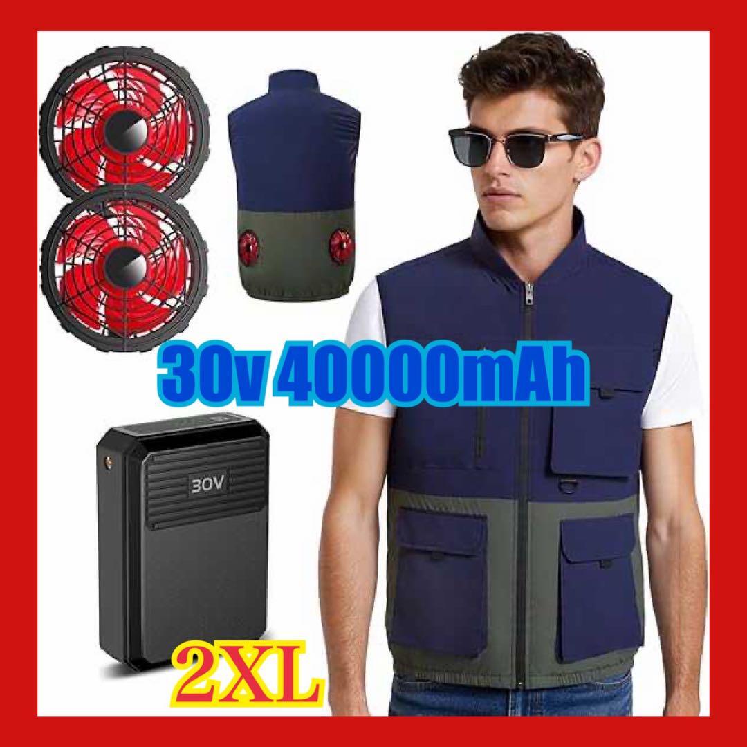 > ファン付きベスト 空調作業服 ファンバッテリーセット【2025超強暴風&40000mAh大容量&30V超高出力】ファン付き作業服 4段階風量調節 日本製