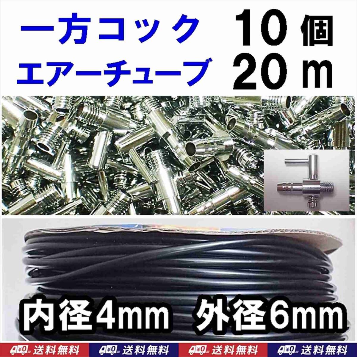 > 【送料込】一方コック 10個 + ソフトチューブ 黒 20m エアーコック エアーチューブ 金魚・シュリンプ・メダカ水槽のエアー供給用に
