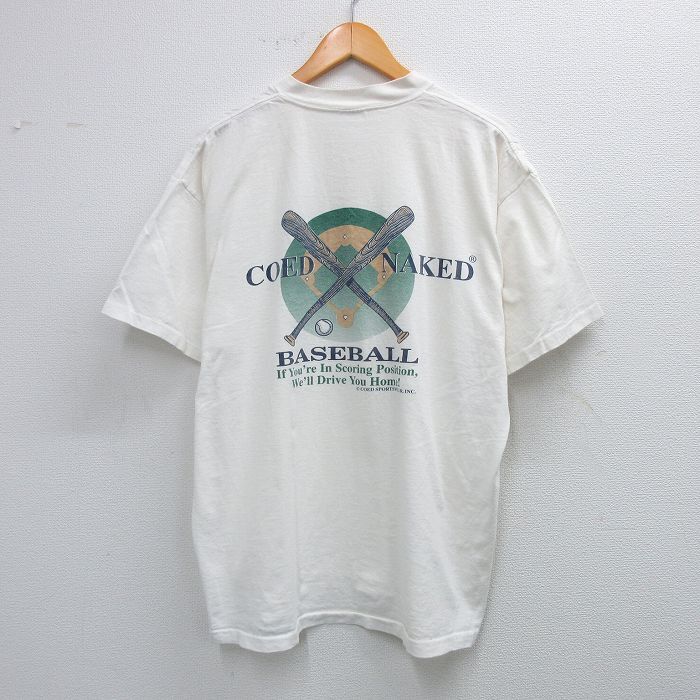 - XL/古着 半袖 ビンテージ Tシャツ メンズ 90s COED NAKED 野球 大きいサイズ コットン クルーネック 白 ホワイト 25aug02 中古