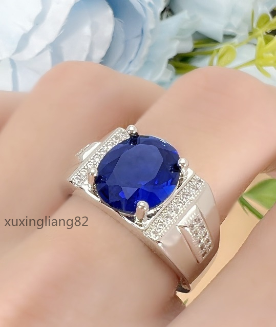 - 新販売 指輪 pt950 プラチナコーティング メンズ 大粒 サファイア キラキラ ジルコン 結婚式 リング アクセサリー フリーサイズ