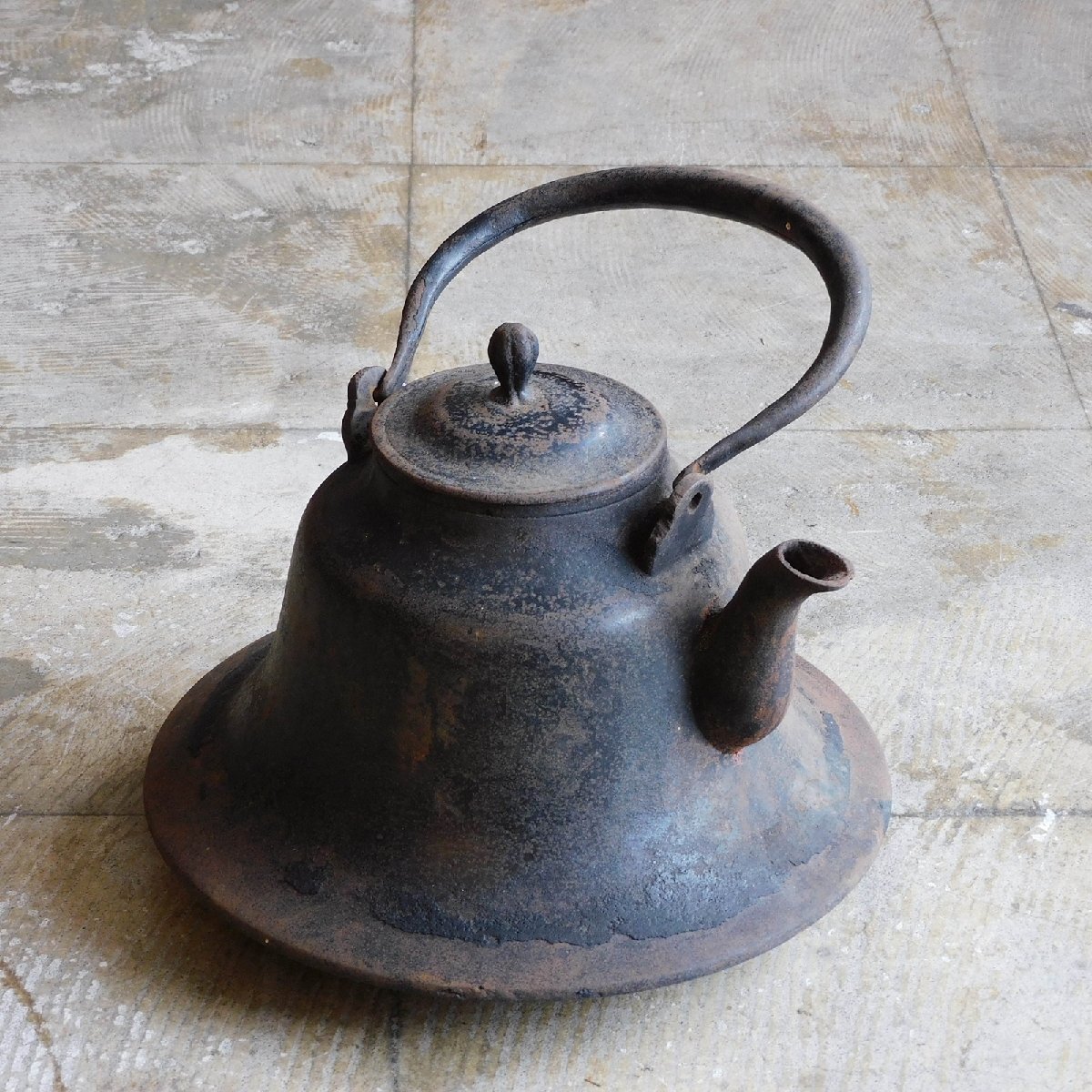 - 羽広形 鉄瓶 HK-a-05371 / 民芸 柳宗悦 民藝 アンティーク ケトル 囲炉裏