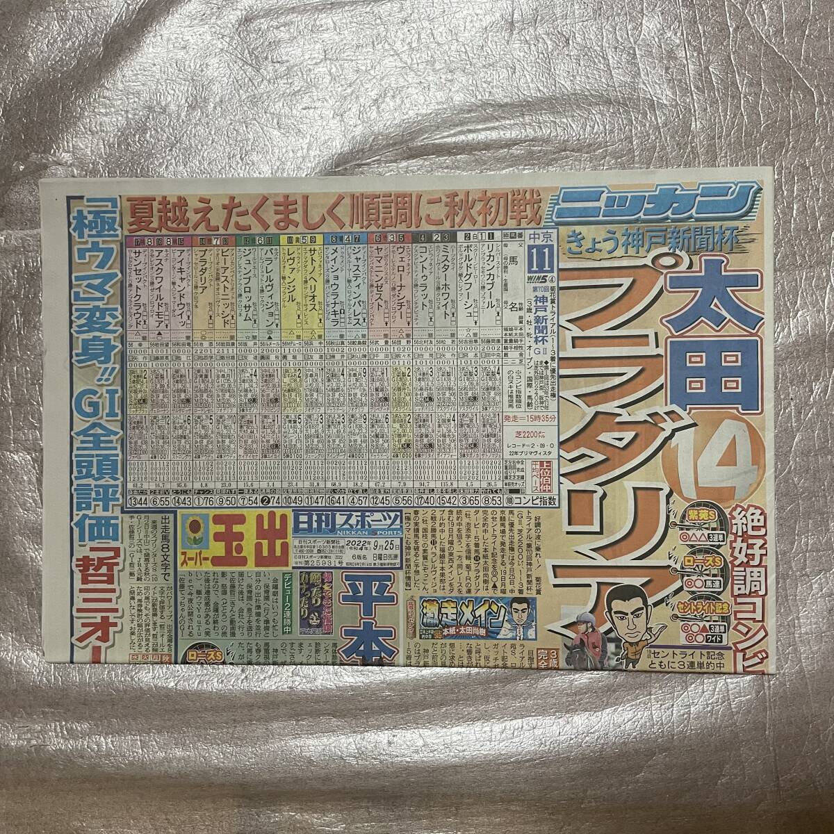 > 【新品未読】日刊スポーツ 2022年9月25日発刊 表紙:神戸新聞杯競馬予想 須田亜香里卒業コンサート中刷り記事
