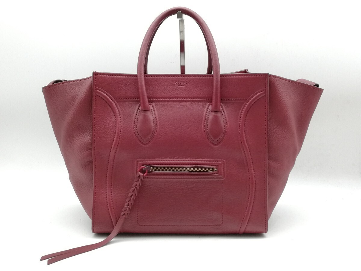 > 良品 CELINE ラゲージ ファントム ハンドバッグ レザー ボルドー トートバッグ セリーヌ 送料無料