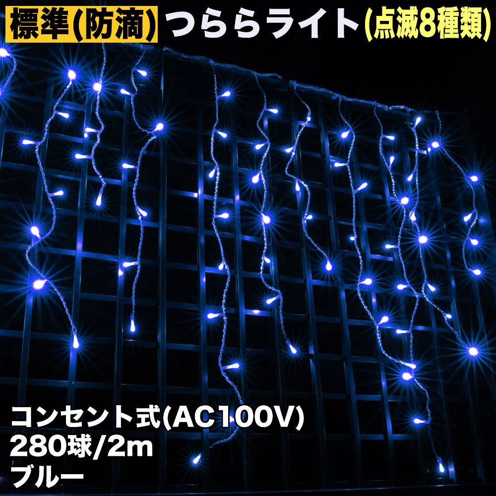 > クリスマス 防滴 イルミネーション つらら ライト 電飾 LED 4m 280球 ブルー 青 8種類点滅 Aコントローラセット