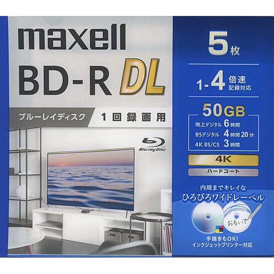 - maxell 録画用ブルーレイディスク BD-R DL 4倍速 5枚組 BRV50WPG.5S [管理:1000025171]