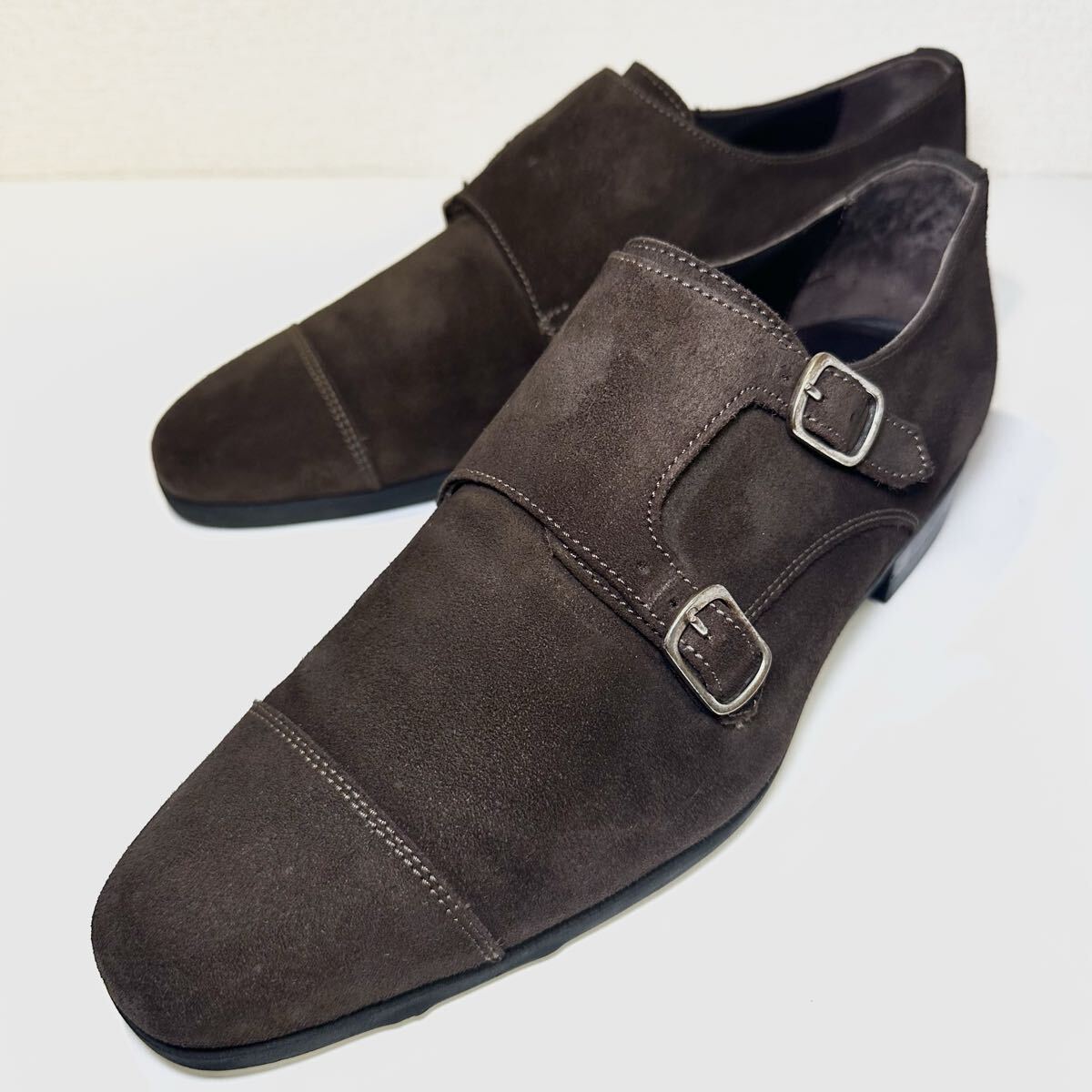 - 即決/良好/FERRANTE (フェランテ) ドレスシューズ ローファー スリッポン ダークブラウン ダブルモンク/24.5cm相当 革靴 ビジネス イタリア