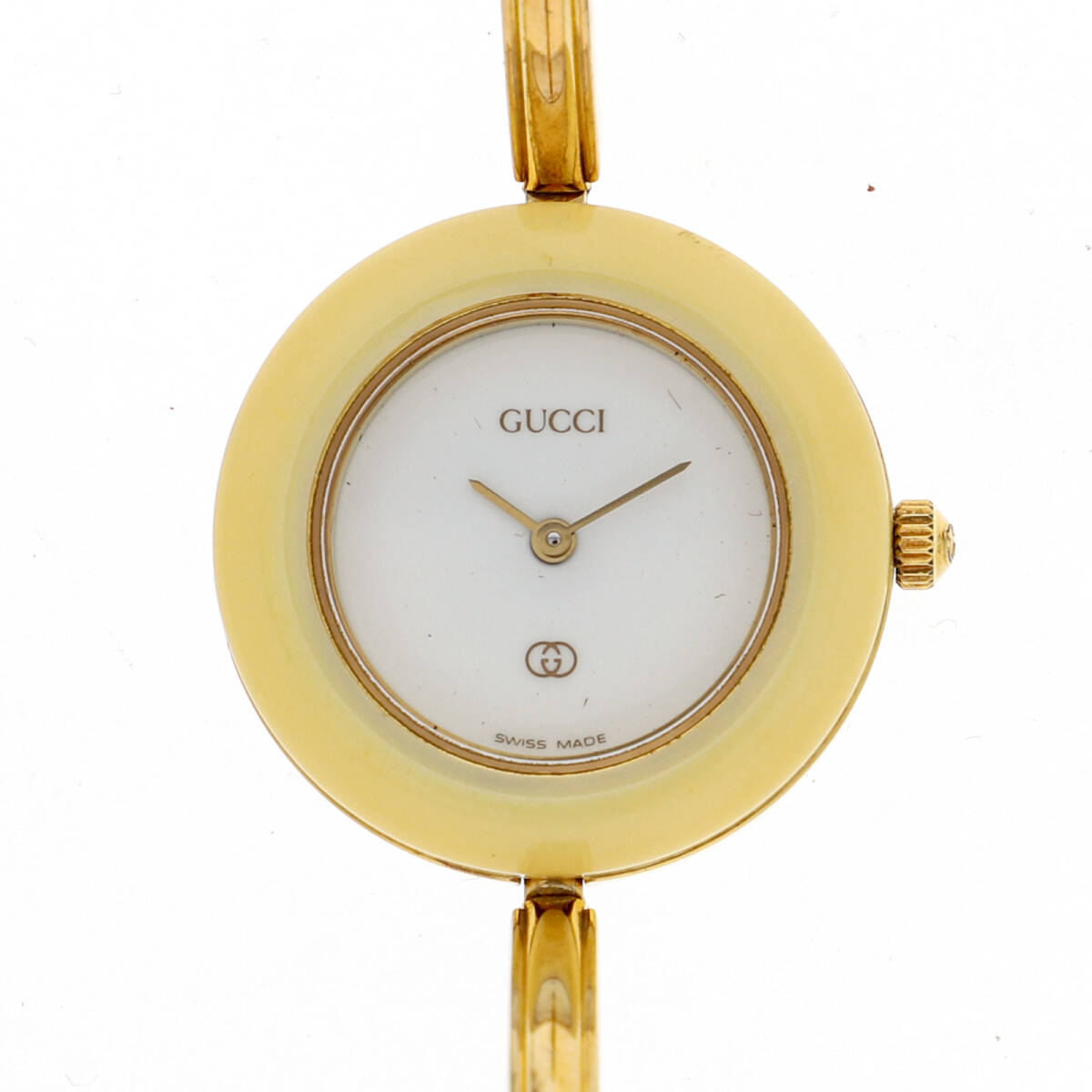> GUCCI グッチ 1100-L チェンジベゼル ホワイトダイヤル GP クオーツ レディース【133156】