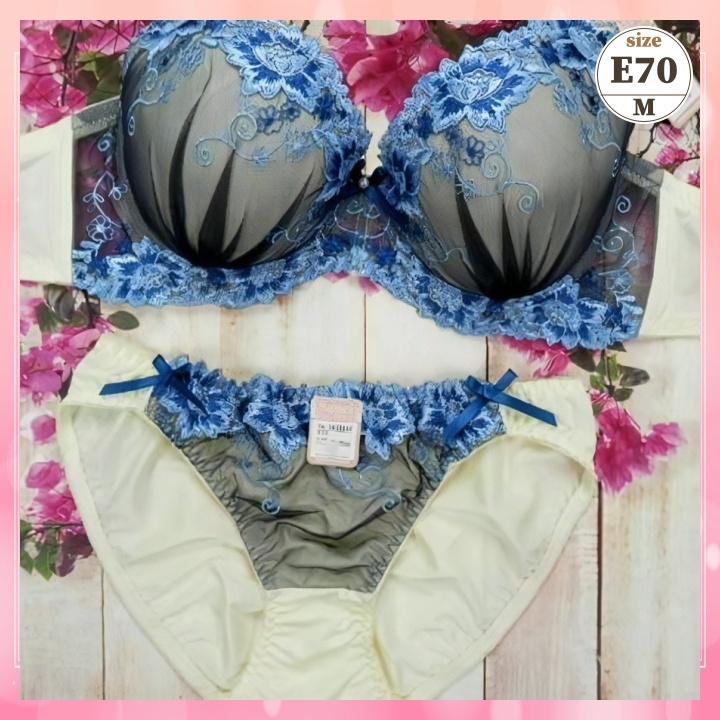 - Ze7001【E70】ブラショーツセット 丸胸 シャクヤクブルー刺繍 クリーム系