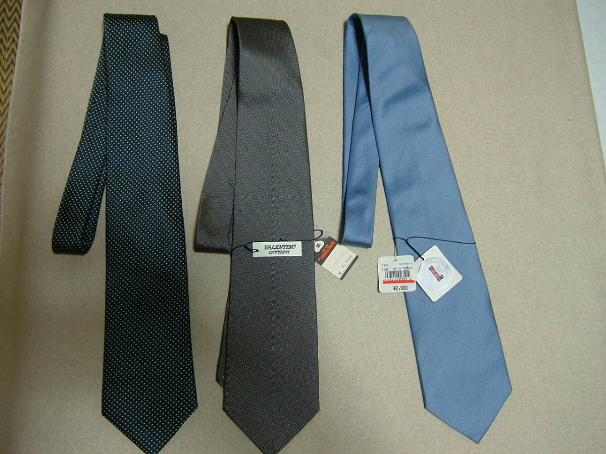- 即決 中古 MICHIKO LONDON薄青、VALENTINO CETTIENI薄灰茶、HOXTON(HORIKOSHI NECKTIE)紺黄 3本セット 送料185円